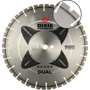 The Dual Series, engineered with a U-notch segment for fast, smooth cutting, and the DSG Series can be run wet or dry on high-speed hand-held saws and are manufactured in the USA with laser welded segments for superior performance cutting a wide range of aggregate and stone.